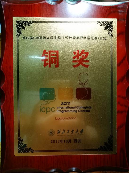 10月28日至29日,第42届ACM国际大学生程序设计竞赛亚洲区域赛(西安站)现场赛在西北工业大学举行,共有来自清华大学、北京大学、复旦大学、武汉大学等近200多所高校的345支队伍入围本次现场赛。经过激烈角逐,我校太阳成集团tyc9728计科15级学生黄孝伟、任豪杰和计科16级学生张振琦组成的“中工振奇”代表队凭借扎实的专业知识和出色的发挥,漂亮地攻克3题,获得一项铜奖,实现我校ACM集训队在ACM国际竞赛亚洲区域赛获奖的零突破。