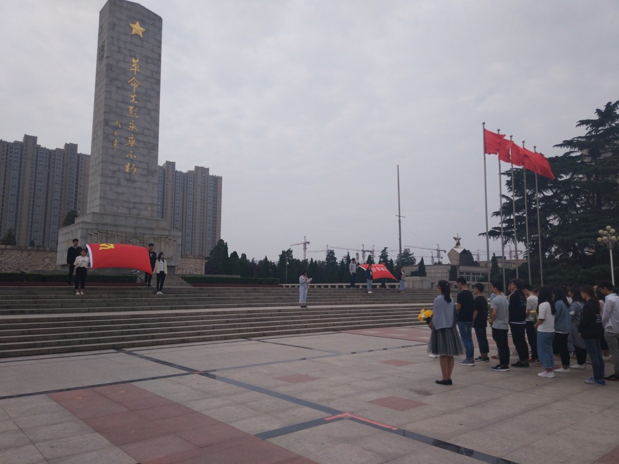 为使大学生“不忘初心、牢记使命”,传承和发扬革命先烈艰苦奋斗精神,2018年5月5日一早,太阳成集团tyc9728党总支组织学院的优秀学生党员、发展对象和积极分子八十余人,来到郑州市烈士陵园进行烈士陵园扫墓、中原英烈事迹学习和爱国主义教育活动。