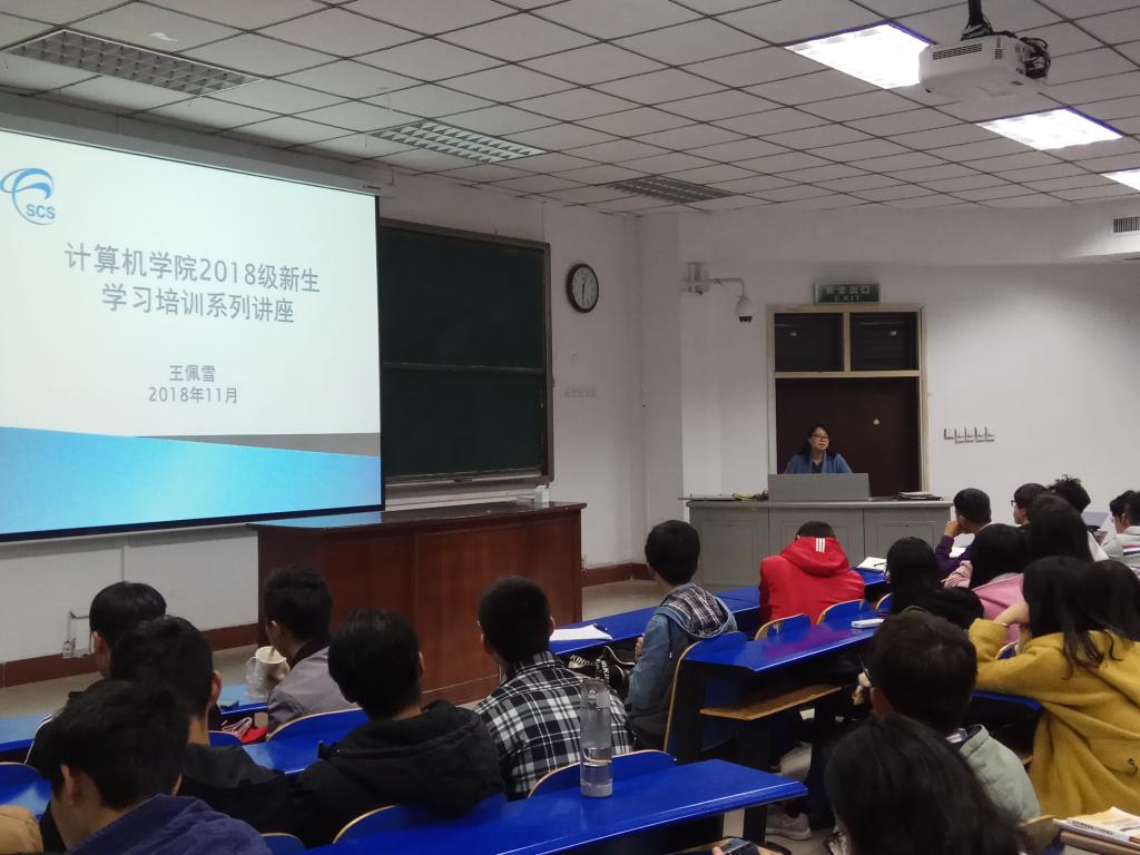 11月12日晚18:00,学院副院长王佩雪老师在4号教学楼101教室,为我院2018级新生作专题报告,我院二百三十多名18级新生参加了报告会,报告会由学工办侯向花老师主持。