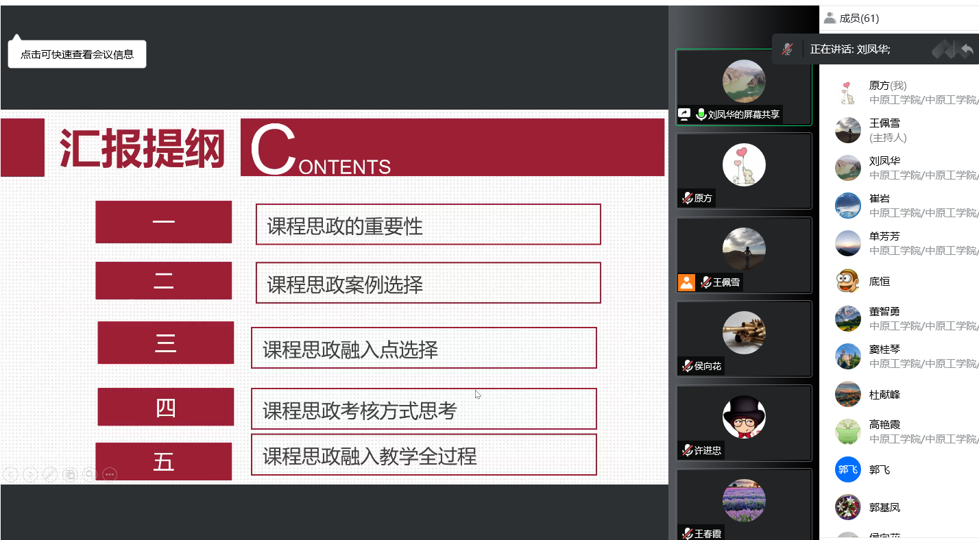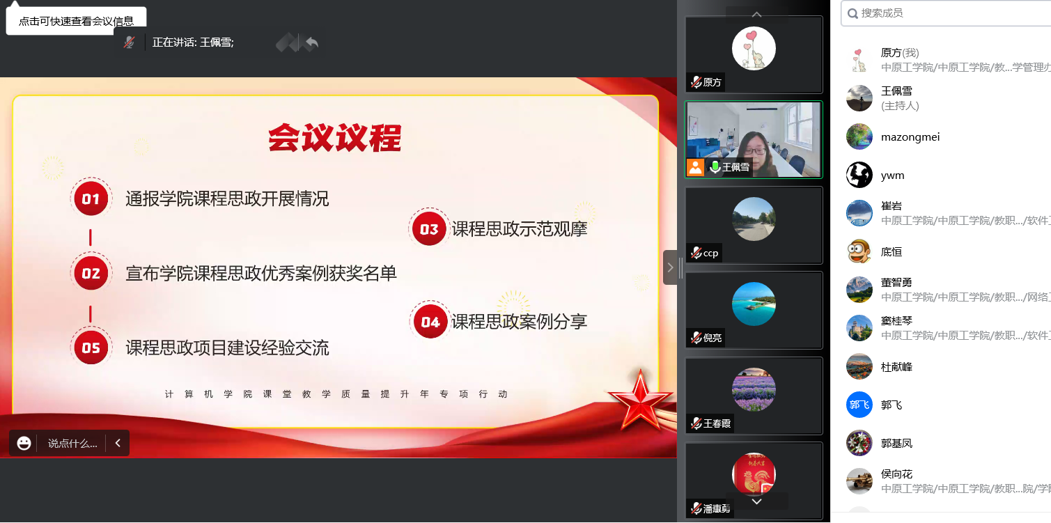 2022年10月25日,我院组织召开了太阳成集团tyc9728课程思政经验线上交流会。我院全体教师参加了会议,会议由副院长王佩雪主持。