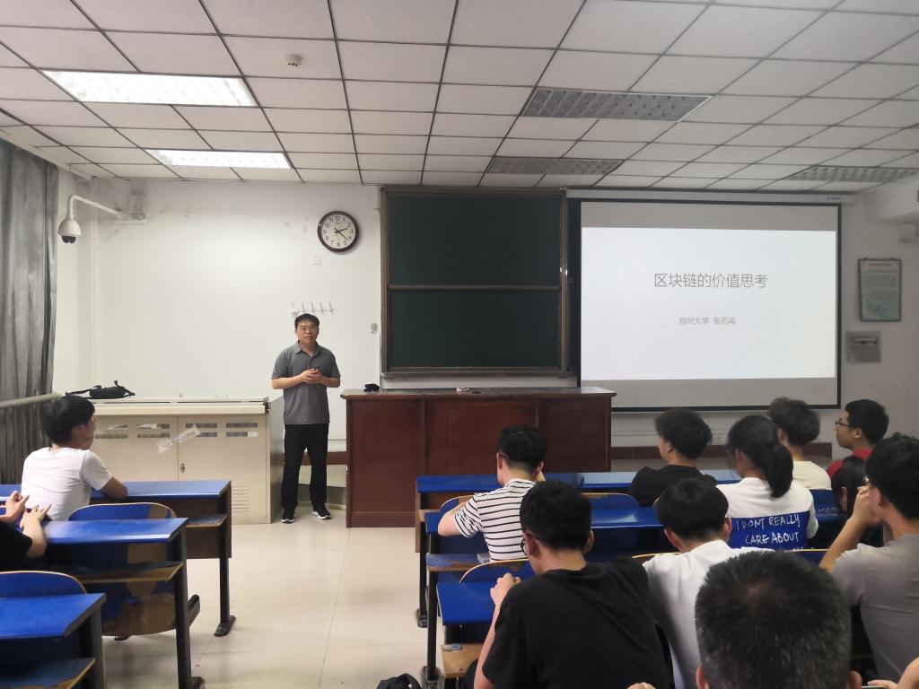 这次请到的专家是郑州大学张志鸿教授,他讲解区块链的相关知识。张教授给大家详细的介绍了区块链的本质,及其在现代电子交易中的重要应用;并指出:区块链作为一种分布式数据存储、点对点传输、共识机制、加密算法等计算机技术的新型应用模式,在现代金融,货币等方面具有十分重要的作用。
