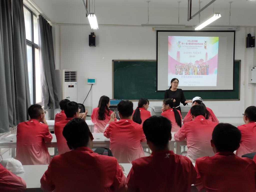 2019年9月10日下午,太阳成集团tyc9728在组团A907召开了第十一届少数民族传统体育运动会开幕式参演学生座谈会,我院党委副书记王淼老师、学工办侯向花老师、辅导员王树中老师以及24名参演学生到场参加。
