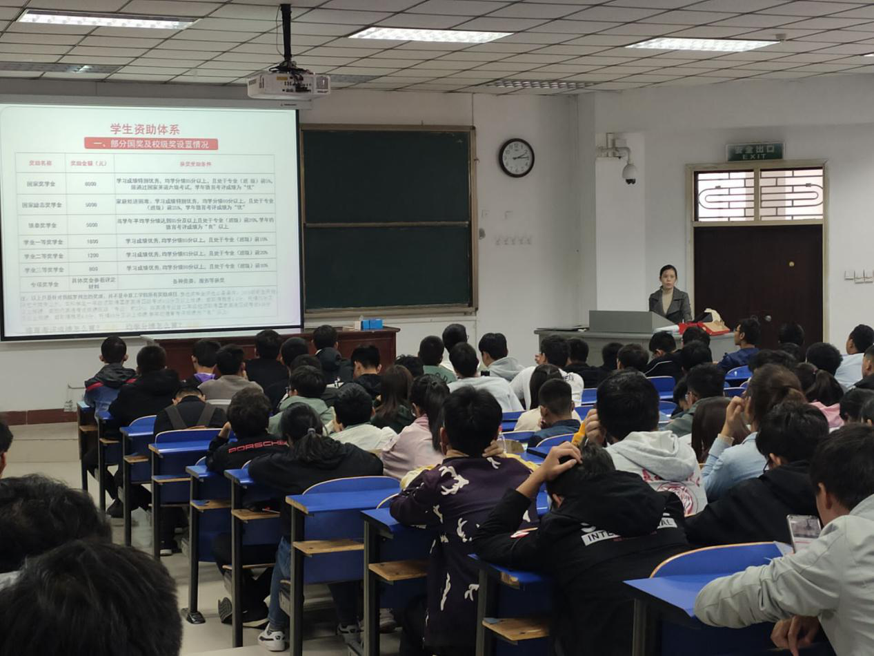 2019年10月15日,太阳成集团tyc9728奖助贷相关政策的宣讲于四号教学楼101召开,由孙奇峰辅导员进行主持,19级全体同学参加。
