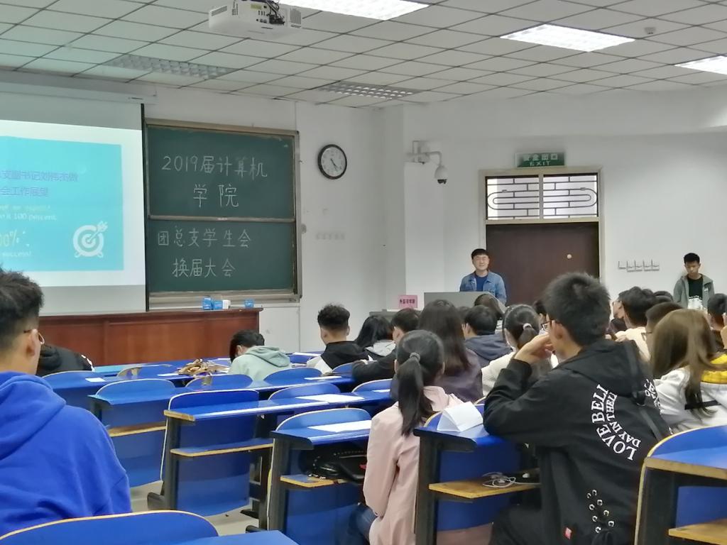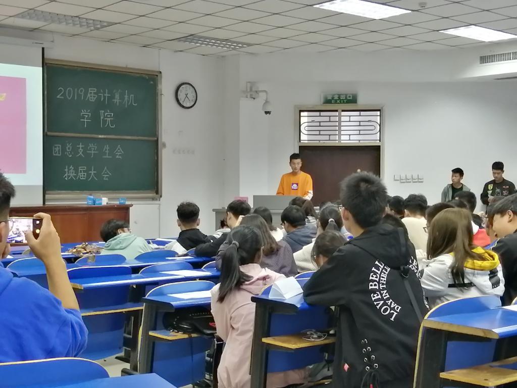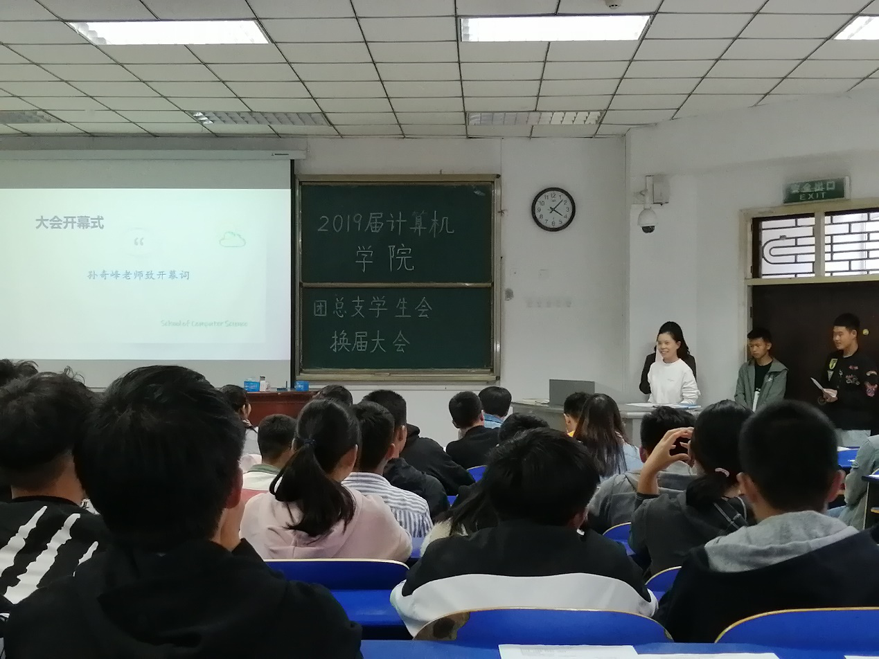 2019年10月18日下午,计算机学生会2019级换届大会在4号教学楼101教室成功举办。此次会议由2019届学生会体育部部长赵晓鸣主持,2019届太阳成集团tyc9728辅导员孙奇峰老师、学工办主任侯向花老师、17届及18届学生会骨干、本届学生会全体成员参加了此次活动。