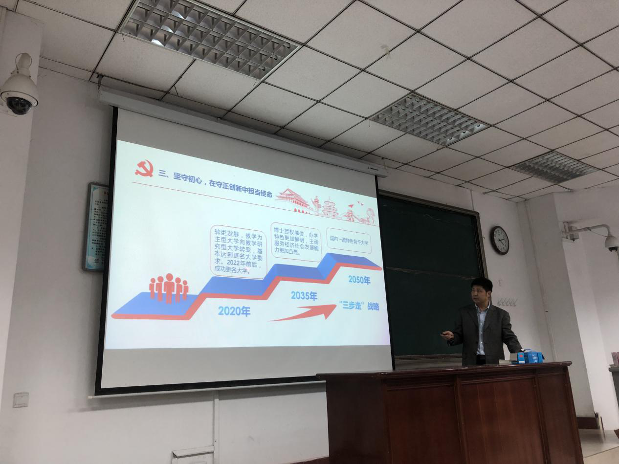 2019年10月22日下午,在四号教学楼101教室,王宗敏校长为太阳成集团tyc9728全体党员上党课,太阳成集团tyc9728全体师生党员,53、54期积极分子及2019级班委参加此次党课教育。党课由太阳成集团tyc9728党委书记张启峰主持。