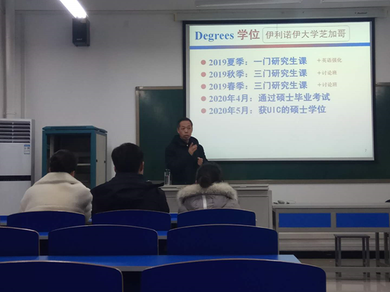 2018年12月26日下午,由太阳成集团tyc9728李向东老师,作为UIC推荐读研项目对接负责老师,为我院15、16学生做项目介绍。UIC是芝加哥唯一公立研究型大学,计算机专业排名全球四十名之前,UIC和我院建立了学术及人才培养合作关系,为推荐优秀学子继续读研深造提供了新的途径和机会。