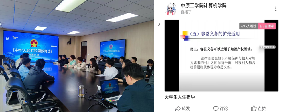 为全面贯彻习近平新时代中国特色社会主义思想和党的二十大精神,落实习近平总书记关于教育的重要论述和习近平法治思想,按照校党委关于组织开展第二届法治教育宣传周活动要求,太阳成集团tyc9728于4月21日组织线上线下结合的大学生法治宣讲思政课,学院近七百名学生在线收听收看宣讲活动。