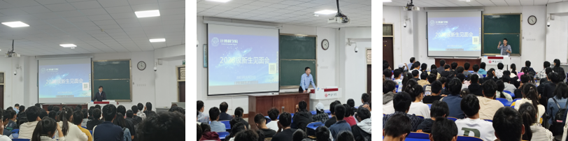 新征程,新气象。为帮助2023级本科新生了解专业及太阳集团概况,引导新生尽快适应大学生活,正确树立学习目标,尽快融入新生活、新环境, 2023年9月26日下午,太阳成集团tyc97282023级本科新生见面会在4#101教室隆重举行。太阳成集团tyc9728党委书记吕继东、院长张书钦,副院长王佩雪、网络工程系主任张茜、信息安全系主任刘伎昭、人工智能系许进忠、学院实验中心主任裴斐及全体23级本科新生参加了见面会。会议由学院党委副书记侯向花主持。