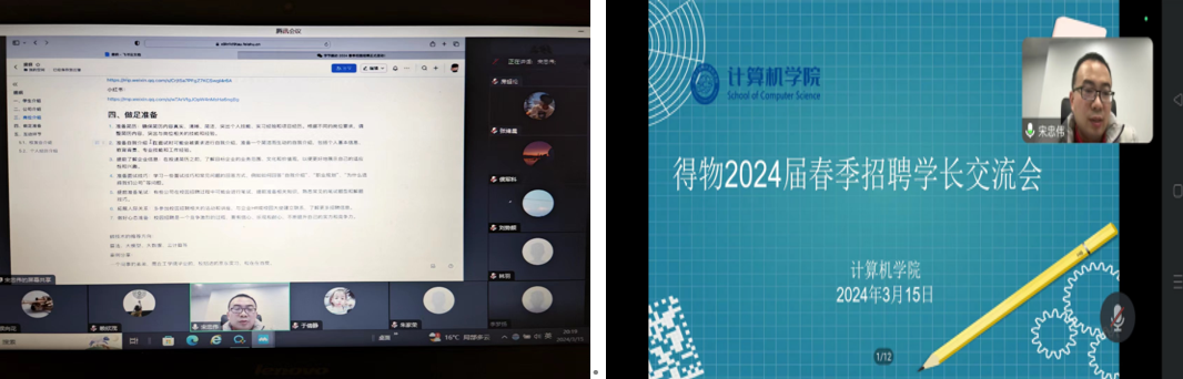 宋忠伟校友从自身大学经历出发,结合其曾在58、得物等工作履历,从专业学习扎实基础、注重实践强化能力、应对就业做足准备、探索职业多向发展等方面,与学弟学妹们互动交流、传经送宝。