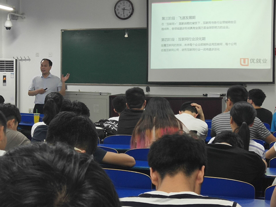 2018年5月15日,太阳成集团tyc9728召开了互联网+时代就业指导讲座,太阳成集团tyc9728部分学生参加听取了钟勋亮老师的讲授。