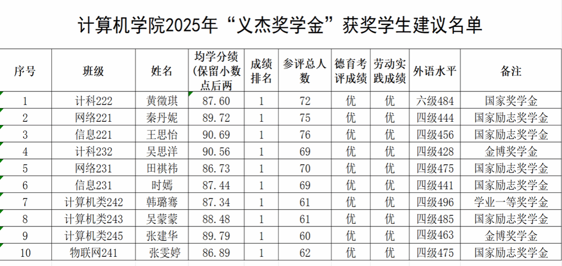海南劲恒私募基金管理合伙企业—太阳集团网tyc9728 2025年度“义杰”奖学金建议获奖名单