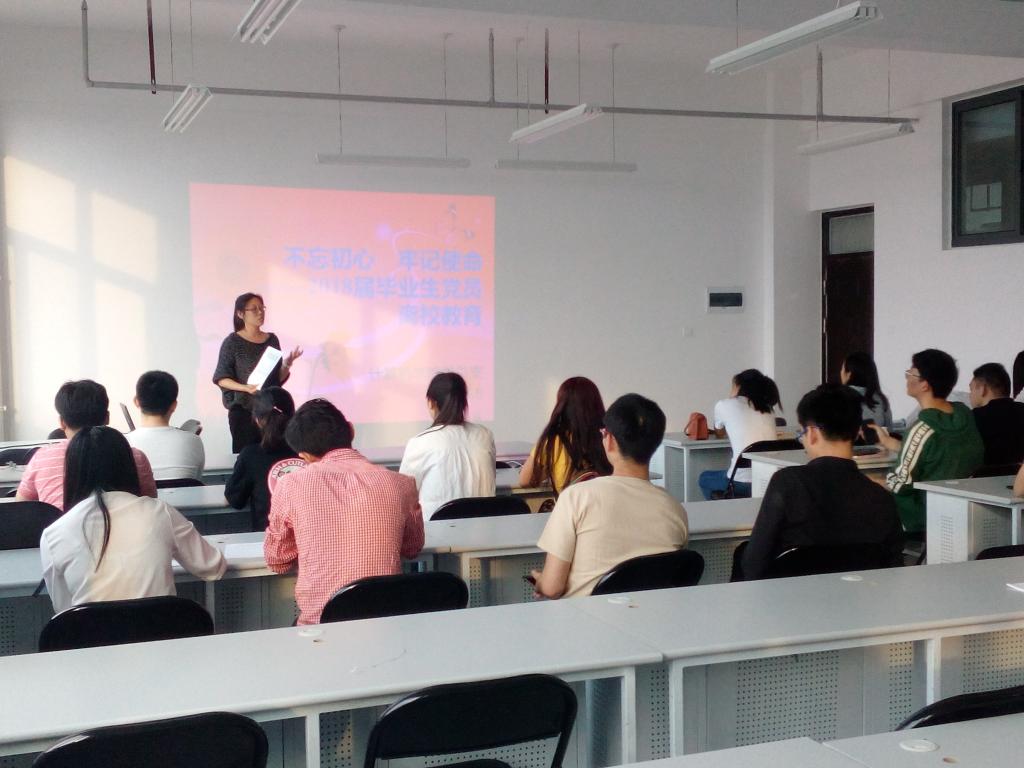 为了进一步贯彻十九大精神,加强对毕业生党员的教育工作,发挥共产党员在毕业生离校过程中的先锋模范作用,2018年5月8日晚六点,太阳成集团tyc9728在3组团A904教室为即将走上社会的2018届毕业生党员举行了毕业生党员教育大会。